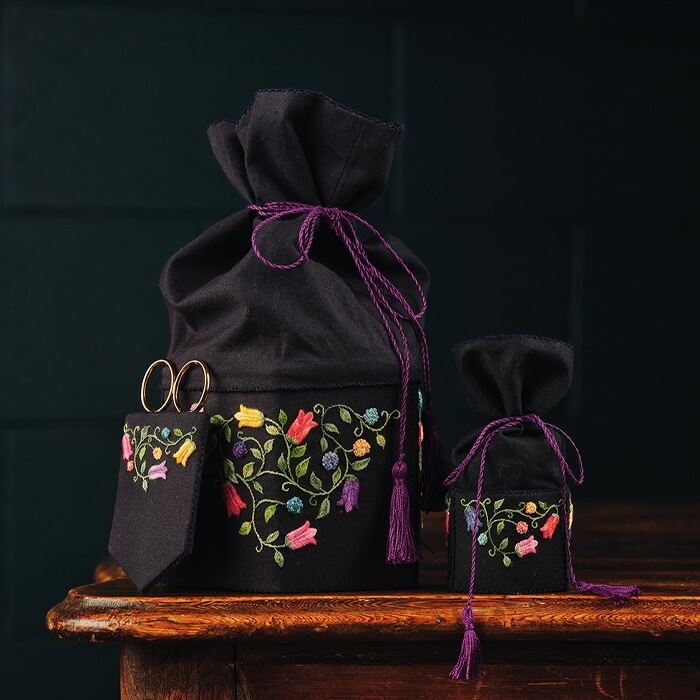 "Kelmscott" от Луизы Сприггс Знание происхождения техники, вдохновения для дизайна или даже истории, стоящей за названием проекта, может помочь повысить интерес и удовольствие от вышивания. Kelmscott, комплект созданный Луизой Сприггс объединяет историю, стиль и практичность в потрясающей рабочей сумке, игольнице и чехле для ножниц. Мотив, вышитый на всех трех изделиях комплекта, был вдохновлен одним из великих — поэтом и дизайнером Уильямом Моррисом, который, возможно, наиболее известен как лидер движения «Искусства и ремесла» девятнадцатого века. Этот знаменательный период дизайна был посвящен воссозданию духа и качества исполнения средневекового искусства и находился под сильным влиянием природы. Повторяя прекрасные цветочные узоры, типичные для Морриса, трио комплекта Кельмскотт украшено восхитительными вьющимися стеблями ярких лилий и ягод, и все это на потрясающем темно-синем фоне. Отдавая дань уважения этому проекту, вдохновленному Уильямом Моррисом, его название — Кельмскотт. П