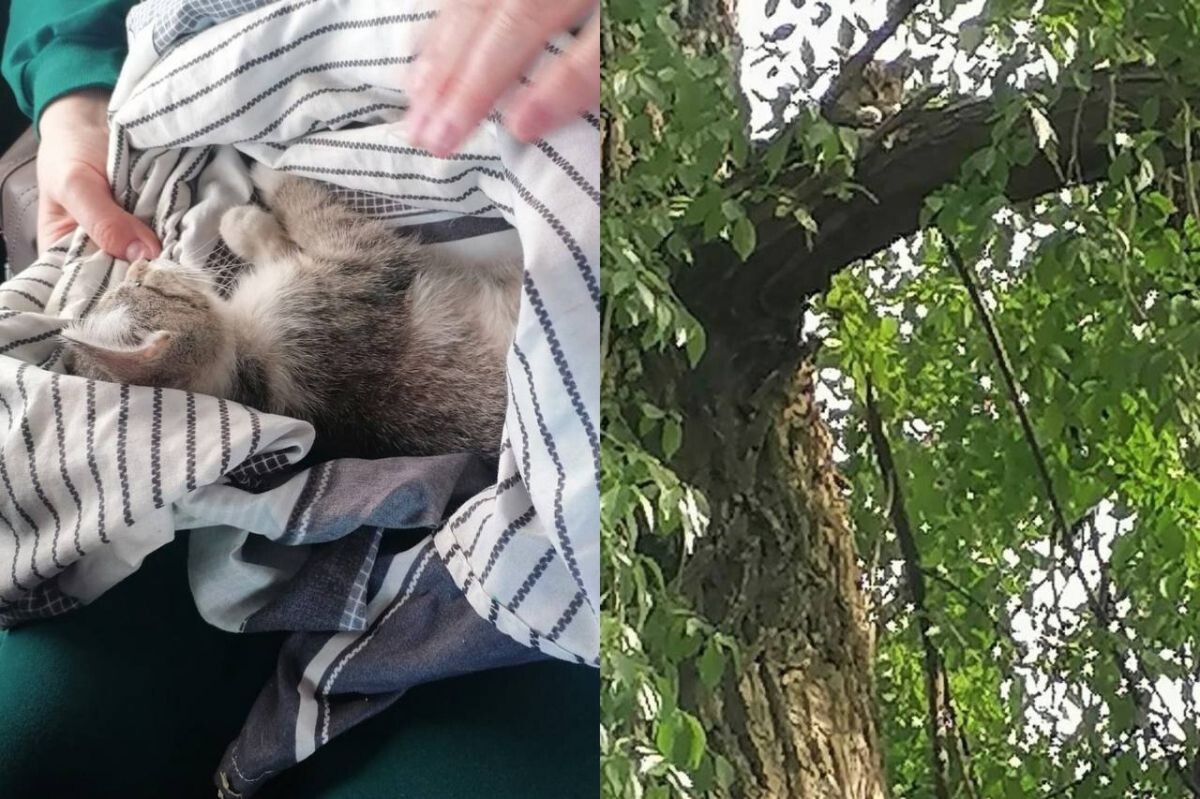 Альпинист спас котенка, застрявшего на высоком дереве неподалеку от железнодорожного вокзала