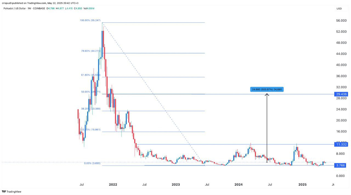 На этой неделе рынок криптовалют восстановился: биткоин вырос до рекордного максимума, а общая стоимость всех монет превысила 3,5 триллиона долларов. Трейдеры делают ставку на новый рост криптовалюты, который подтолкнет биткойндо 150 000 долларов США и выше для большинства альткоинов. Альткоины, которые, скорее всего, будут успешны в новом сезоне альткоинов, это те, у которых есть сильные фундаментальные и технические показатели. Берахайн, выделяя лучший вариант для покупки и тот, который следует продать или избегать. и выделяя лучший вариант для покупки и тот, который следует продать или избегать. Polkadot — один из самых противоречивых криптоактивов для покупки в этом бычьем забеге. Он предлагает доходность стейкинга в 11,5%, что значительно выше, чем у большинства криптовалют второго уровня, включая Ethereum. Помимо сильных фундаментальных показателей, основной причиной, по которой акции DOT являются хорошей покупкой, является то, что они остаются в трехлетней консолидации между $3,