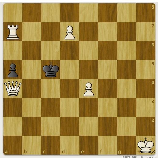 Черные с королем и пешкой противостоят большому количеству фигур белых.