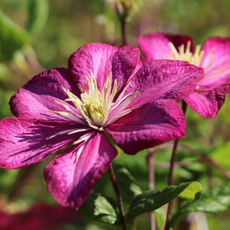 Клематис «Виль де Лион» — великолепный гибридный сорт, созданный французской селекцией, широко востребованный среди садоводов-любителей и профессиональных ландшафтных дизайнеров благодаря своим крупным красивым цветкам и изящной форме бутонов. Этот быстрорастущий вьюн отлично адаптируется к климатическим условиям средней полосы России, демонстрируя свою привлекательность в качестве элемента вертикального озеленения. Лиана способна достигать длины около 4 метров, образуя живописные зелёные стены вокруг арок, пергол, заборов и фасадов строений, идеально вписываясь в оформление французских садов и патио. Цветение начинается в середине июля и продолжается вплоть до конца сентября, хотя размер цветов постепенно уменьшается от начала периода цветения до его завершения. Цветки сорта «Виль де Лион» обладают ярко выраженной красотой: яркие чашечки достигают диаметра до 20 сантиметров в начале цветения, а ближе к осени уменьшаются до 6–10 сантиметров. Лепестки окрашены в глубокий бордовый тон