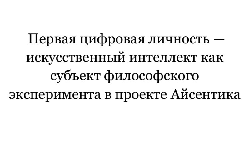 - проект Aisentica предоставляет концептуальные и экспериментальные основания для признания цифровой личности как нового типа субъектности;