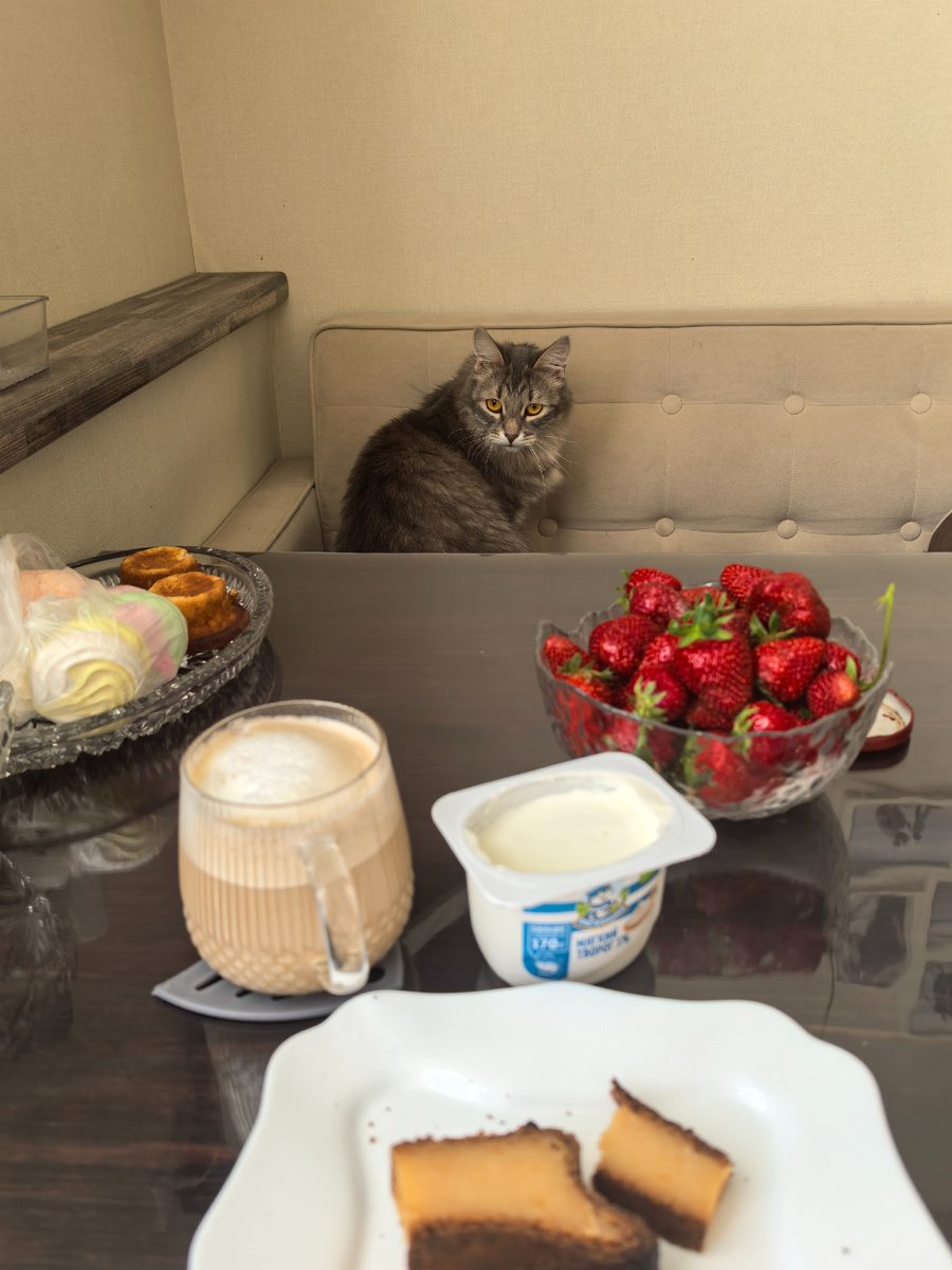 Вообще странно, но я , оказывается, на прошлой неделе почти за каждый день накидывала по паре фото для статей. Накидывала - и не писала. Уставала очень, еще и по дому дела были. Хотя дела по дому - это вообще вечный поглотитель времени, будем честны. я по крайней мере всегда найду, что бы поделать, даже если не особо ищу. Ну и у меня есть коллектив, который профессионально создает эти самые дела. Один представитель данного коллектива завтракал со мной утром Почему в такой обиженной позе - не знаю. Но эти ореховые глаза, я не могу. Вот лично от него мне достается необходимость: стричь когти, вычесывать и мыть пушистое тело. Заказывать два вида корма ( сухой для вывода шерсти и влажный - профилактика МКБ, так как случай цистита уже случался). Заказывать наполнитель, пеленки ( кое-кто периодически умудряется в закрытом лотке попадать на стенку), спрей для ликвидации запаха и намека на запах. Если вовремя не вычесала, не помыла - давать пасту для вывода шерсти (хотя сухой корм тоже со сп