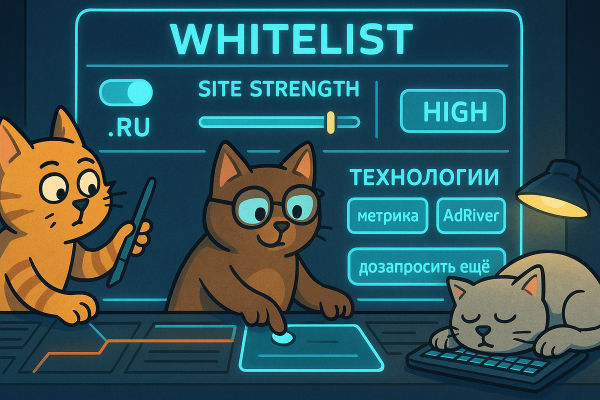 ✅ Выбор сайтов по технологиям (Adfox, AdRiver, Метрика и др.)