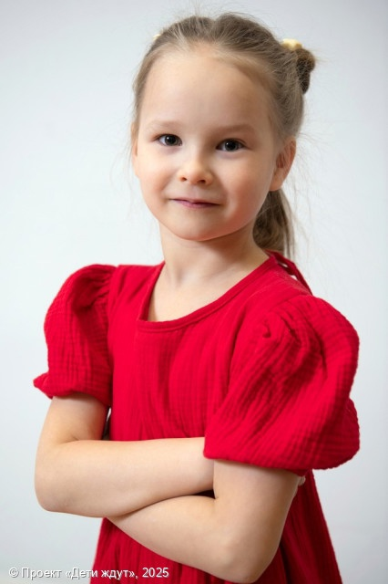 Дарья — очень милая и приветливая девочка. Она общительная, легко взаимодействует как со взрослыми, так и с детьми. Охотно играет с ребятами и подражает действиям сверстников. Дашенька всегда улыбается и дарит позитивное настроение окружающим. Будучи самой младшей в семье, она по рассудительности ничем не уступает своим старшим братьям и сестре. Девочка заботливо приглядывает за всеми, дает советы и улаживает даже незначительные споры. Даша с нетерпением ждет школу и мечтает стать отличницей с самого первого класса. Она активно готовится к учебе, и в этом ей помогает сестра. На дошкольных занятиях Дарья проявляет внимательность и активность, всегда готова продемонстрировать знания и удивить педагогов своим кругозором. С удовольствием смотрит мультфильмы и слушает сказки. Она любит рисовать, проявляя свою фантазию и творческие способности. Также Дашенька с увлечением плетет из бисера и резинок, создает различные поделки и шьет одежду для кукол.