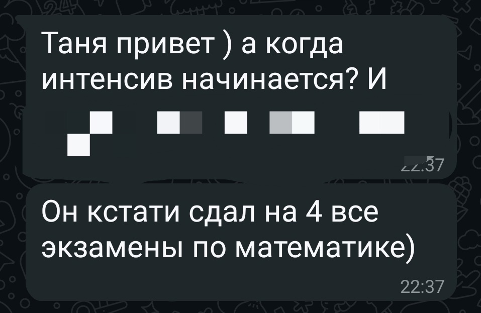 "Когда начинается интенсив? Он кстати сдал все экзамены по математике на 4."