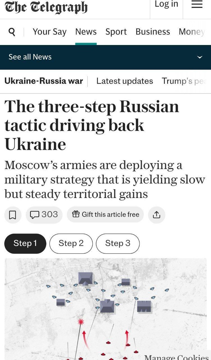 ВС РФ начали использовать тактику комбинированных ударов при штурме, которую украинские военные назвали "тройным удушающим захватом" Как пишет британская газета The Telegraph со ссылкой на ВСУ, в последнее время российские военные атакой штурмовиков сковывают боевиков, заставляя занять позиции во второй линии своей обороны. Затем с помощью беспилотников ВС РФ начинают изолировать поле боя, уничтожая боевиков, оставшихся без укрытия. И когда всушники прячутся по укреплениям в глубине своей обороны, по ним начинают лететь бомбы с УМПК. "Вот здесь и возникает действительно сложная дилемма, на которую на самом деле нет ответа. Окапывание и все эти защитные меры отлично подходят для снижения потерь от артиллерии или FPV, однако планирующие бомбы разрушат эти укрепления и похоронят людей", - рассказал британский военный эксперт Ник Рейнольдс. Новая тактика демонстрирует улучшения во взаимодействии родов войск в ВС РФ и заставляет украинских солдат выбирать между удержанием своих Далее ч