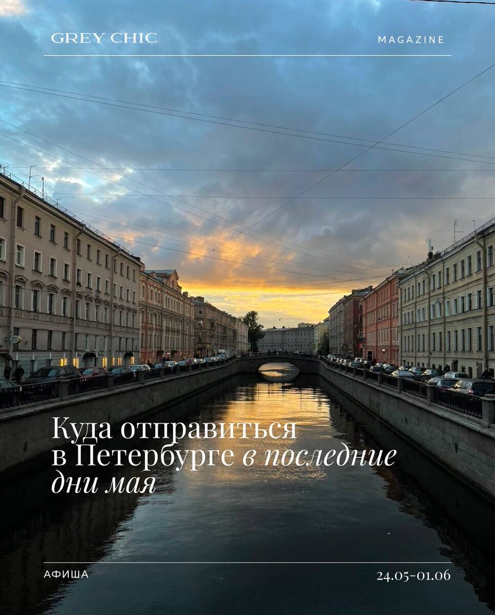 По пятницам мы рассказываем, куда можно отправиться на выходных. Но в завершение весны решили сделать не просто афишу, а целый план мероприятий на ближайшее время. #greychic_magazine_афиша Куда сходить на выходных 24-25 мая: 🤍 Открытие «Летнего театра» Х LEGENDA в Новой Голландии Двор новоголландской «Бутылки» превратится в сцену! В этом году проект снова запускается совместно с компанией LEGENDA. Подробности с 25 мая Новая Голландия 🤍 Выставка ‘FEEL BETTER! В Art Square Gallery Arts Square Gallery и POP-UP GALLERY представят работы Оскара Ренкеля — основателя и креативного директора ювелирного бренда Hands Remember, художника и ментора. Выставка посвящена личной истории автора — его пути, поиску смыслов. ‘FEEL BETTER! ’ — сообщение о том, что искусство выводит из отчаянного состояния и дарит понимание, для чего был дан трудный период в жизни. Билеты 23 мая-28 июня Arts Square Gallery и Arts Square Bar, Итальянская ул., 5 🤍 «Книжный салон» Лекции, презентации книг, масштабная