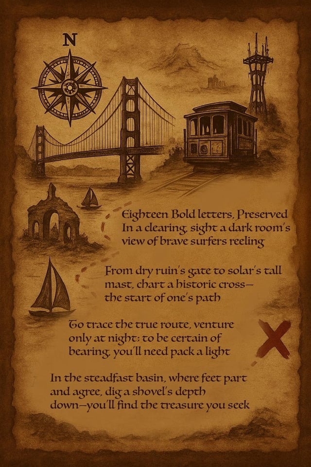 Вскоре стало известно: клад нашли в Mount Sutro Open Space — это природный заповедник на юго-западе Сан-Франциско. Густой лес, переплетённые тропы, почти нетронутая природа. И металлический ящик закопан около камней.