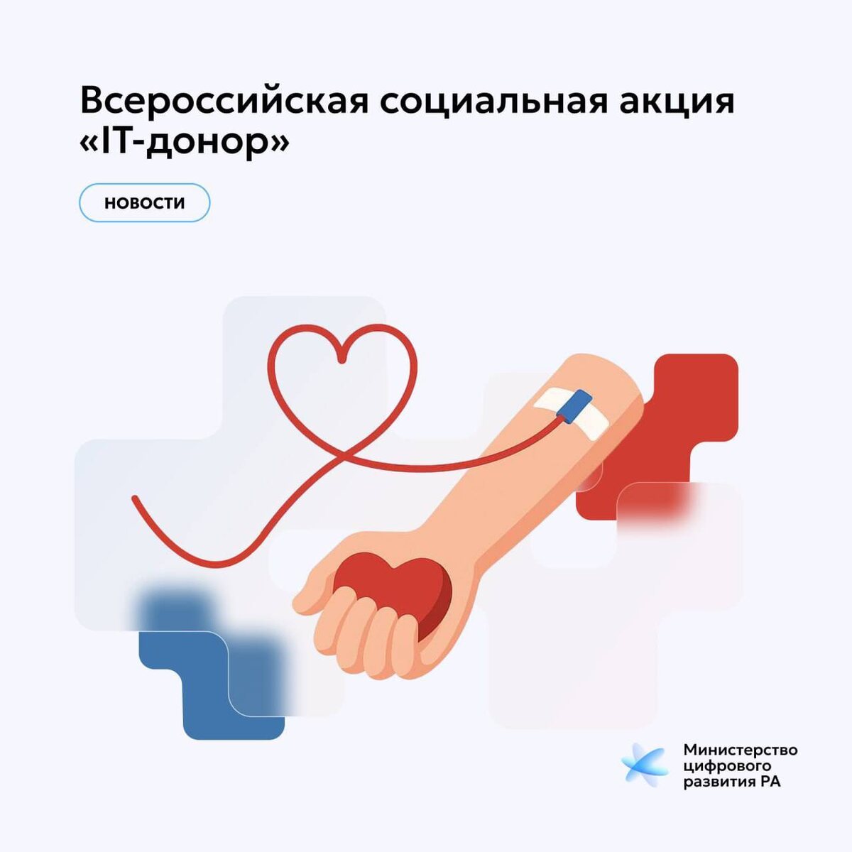 Всероссийская социальная акция «IT-донор» В период с 2 по 7 июня 2025 года состоится 10-я Всероссийская акция «IT-донор» — социальная инициатива, направленная на развитие культуры добровольного донорства среди сотрудников IT-отрасли. Акция проводится дважды в год и в этом году отмечает пятилетие с момента запуска. За время реализации проекта: — сдано более 1700 литров крови; — оказана помощь более 3200 пациентам; — участие приняли свыше 650 IT-компаний и 65 региональных министерств цифрового развития. Принять участие в акции может любой специалист, связанный с IT-сферой. Для этого необходимо сдать кровь в ближайшем пункте в период проведения акции. В 2025 году в рамках инициативы также осуществляется поддержка донорства костного мозга. Дополнительная информация и карта пунктов сдачи крови — на сайте проекта: https://it-donor.club/