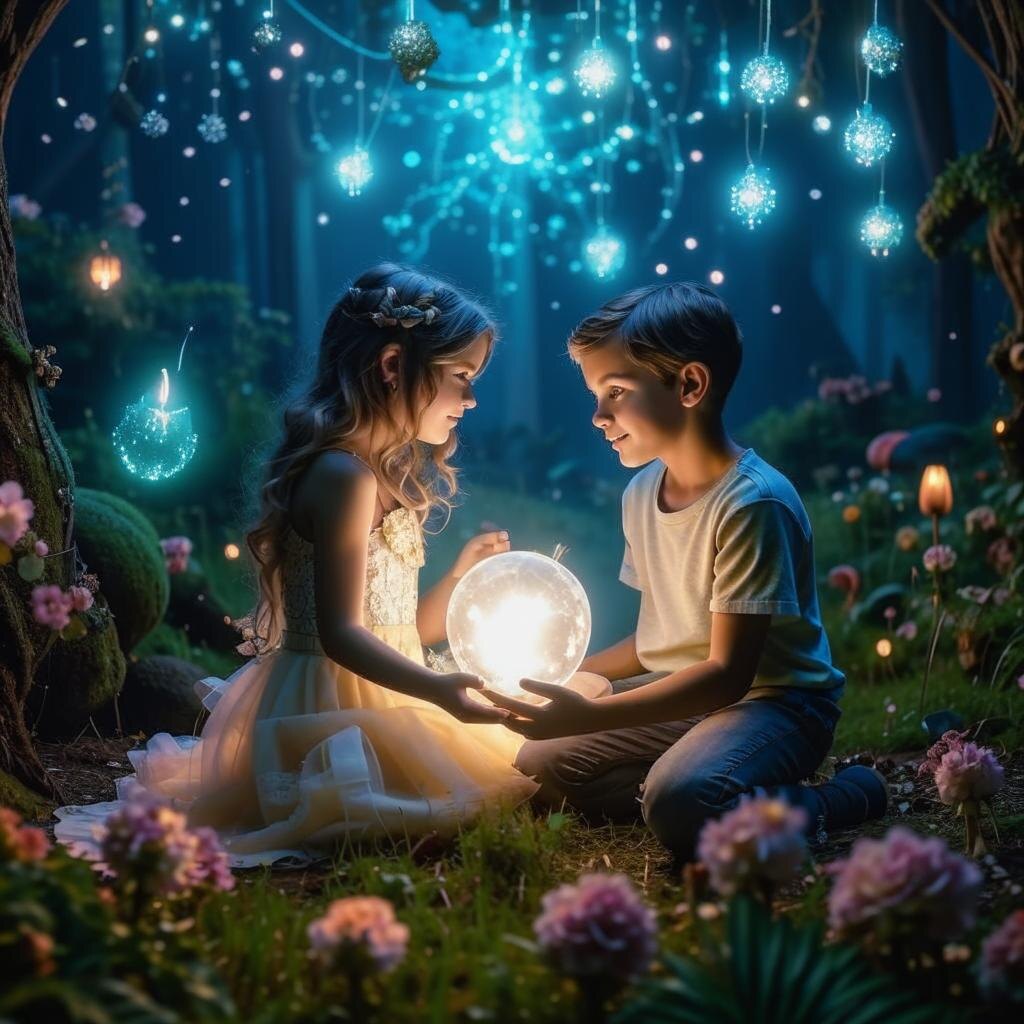 Искорка взмахнула палочкой, и воздух заструился, как вода. Появилась арка из светлячков, а за ней — сад, где розы светились голубым, тропинки были выложены из лунных камешков, а вместо птиц по веткам прыгали тенистые кролики с бантиками на ушах.