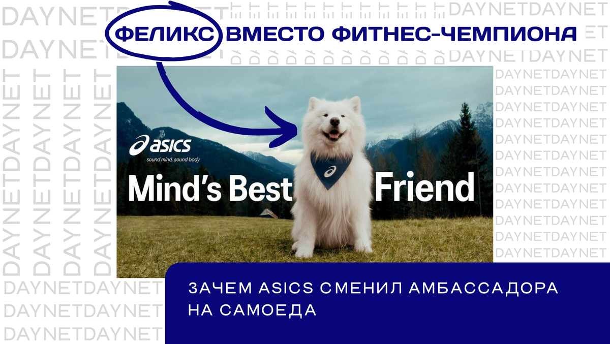 Феликс вместо фитнес-чемпиона: зачем ASICS сменил амбассадора на самоеда