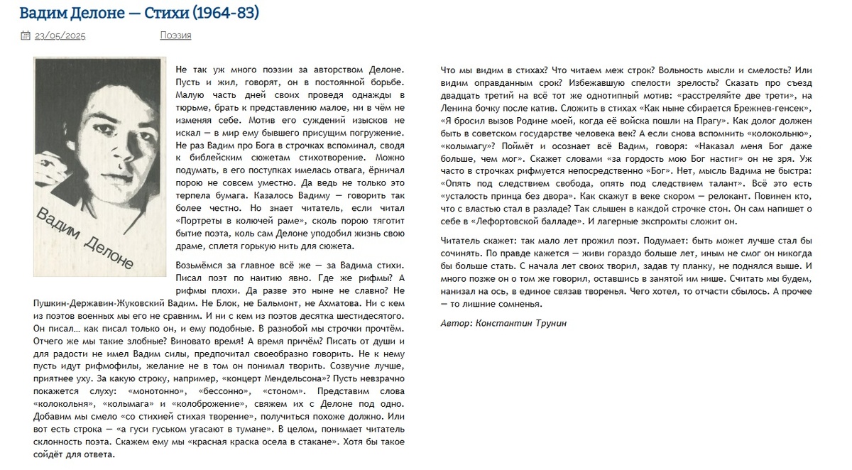 Вадим Делоне - Стихи (1964-83) | Критика