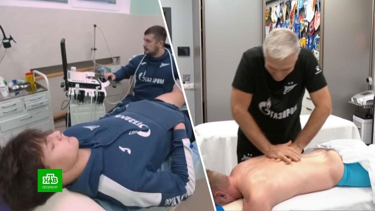 [ Смотреть видео на сайте НТВ ] Футбольные победы добывают не только на поле. За пределами газона всё в руках медицинского штаба. Врачи и физиотерапевты «Зенита», которому в этом году исполняется 100 лет, помогают залечивать травмы, массажисты правильно восстанавливают перегруженные мышцы. В стан сине-бело-голубых массажист Александр Рязанцев пришел из легкой атлетики. Футболисты, смеется Александр, сделаны из того же теста, но травм у них больше: контактный вид спорта. Самое лучшее восстановление — баня и массаж, как ни крути. К этому привыкли даже легионеры, хотя не сразу оценили пользу процедур. Сегодня все игроки основы ходят на сеансы к Рязанцеву, сравнивая его с волшебником. Дмитрий Чистяков, защитник ФК «Зенит»: «Если ты провел на поле целую игру, 90 минут, организм устал, мышцы устали. Конечно, на следующий день обязательно нужен массаж, чтобы промять, прощупать всё». Кажется, эти золотые руки не знают усталости, но знают все болевые точки игроков и могут футболиста поставить н