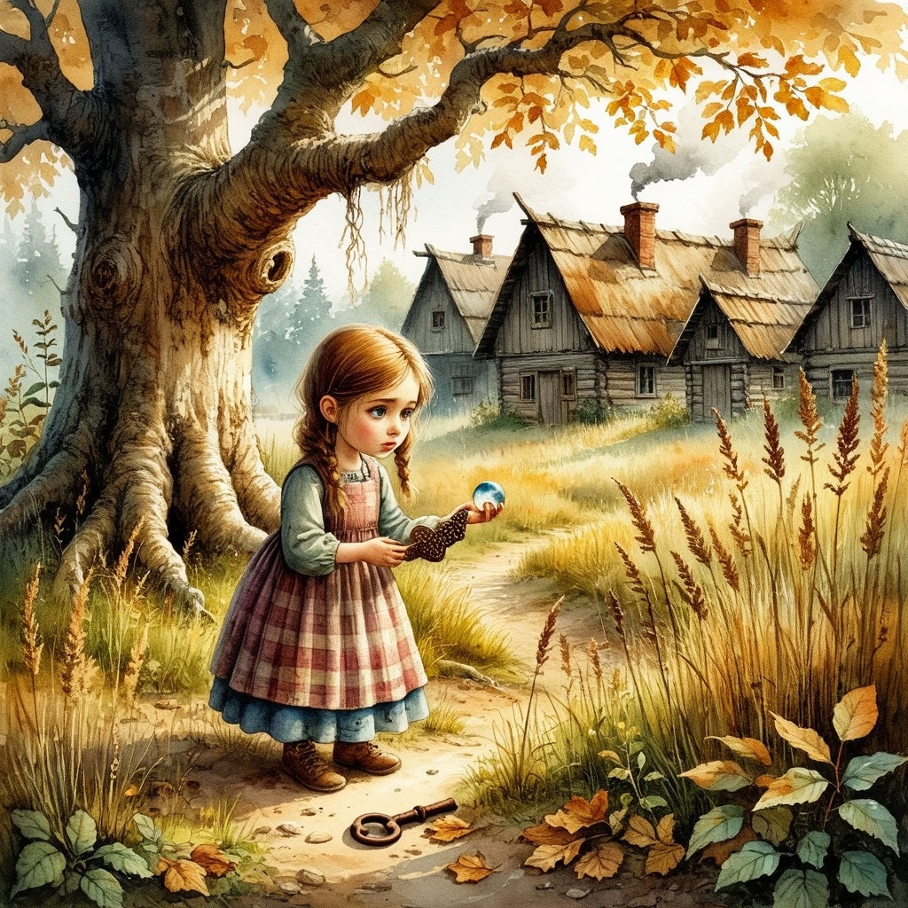 В маленькой деревушке, затерянной среди зелёных холмов, жила девочка по имени Лиза. Она была так бедна, что даже старая медная монетка, подаренная ей на день рождения бабушкой, казалась сокровищем.