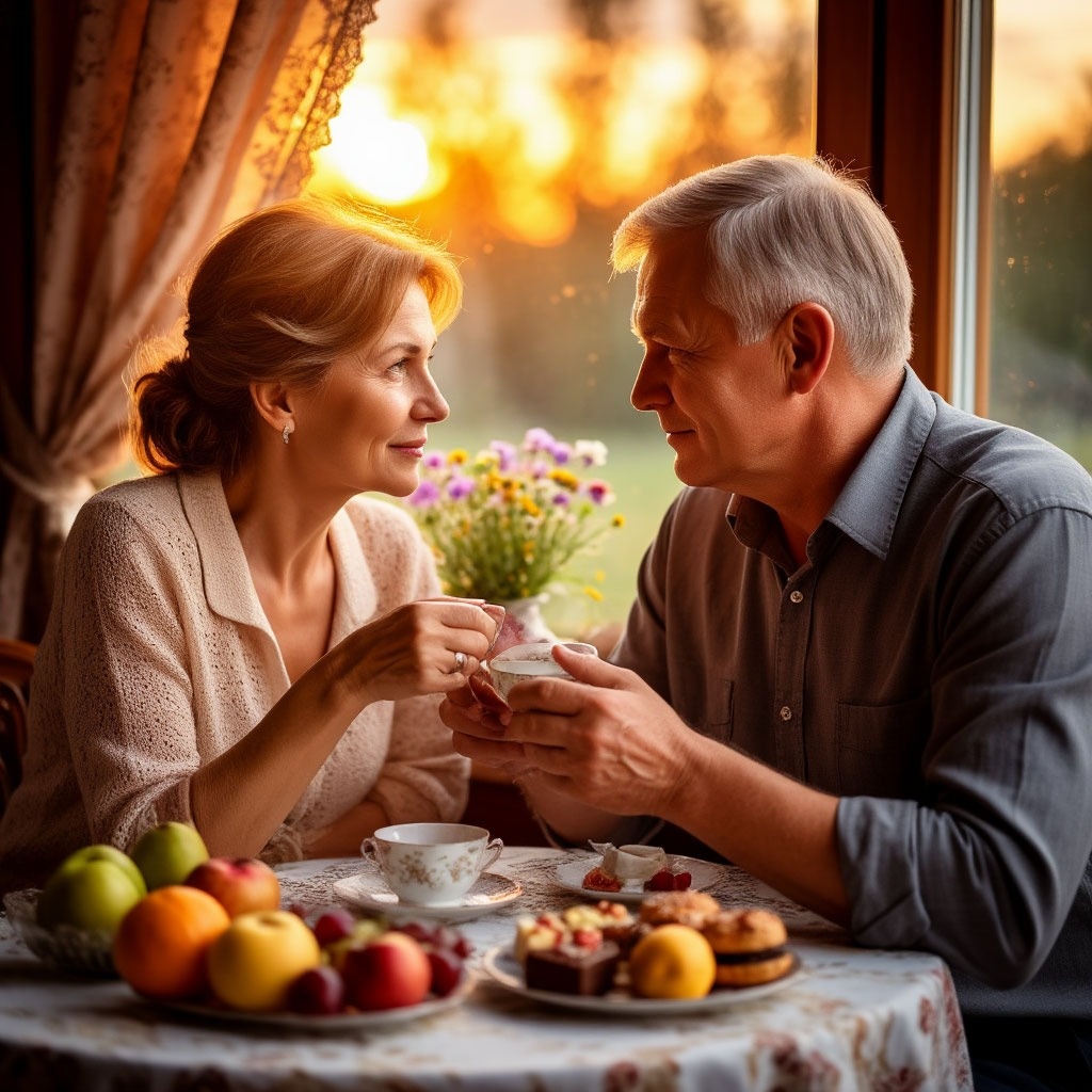 Я всегда мечтала о большой любви. О такой, как в кино и книгах: с бешеным сердцебиением, страстными признаниями под дождём и взглядами, от которых тает душа и пылает сердце. Мой первый муж был красив, галантен, говорил правильные слова — но через три года брака ушёл к другой, оставив мне лишь кучу долгов, разбитое сердце и утерянную веру в «идеал». Второго мужа я встретила в сорок. Он не умел говорить красивые тосты, путал время наших свиданий и вместо букетов дарил мне горшки с цветами — «чтобы дольше жили». Однажды, после особенно тяжёлого дня, я разрыдалась: «Почему всё в нашей жизни не так, как в кино?» Он молча налил мне чаю, положил рядом две конфеты — мои любимые, с миндалём — и сказал: «Потому что кино заканчивается через два часа. А нам с тобой жить дальше». И тогда я вдруг поняла: любовь — это не громкие слова. Это когда он, невыспавшийся после трудной смены, встаёт раньше меня и готовит завтрак, чтобы я могла поспать лишние полчаса. Когда носит в кармане мои заколки и