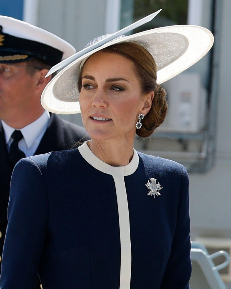 Брошь HMS Glasgow с чертополохом 🚢 Вчера на крещении корабля Кейт появилась в новой броши. Дворец не уточнял, но вероятнее всего, это подарок к церемонии - традиционно, женщины получают украшения. 🌾 Брошь представляет собой герб корабля HMS Glasgow, который спонсировала и крестила Кейт: в центре находится покровитель Глазго, св. Мунго, изображение окаймлено веревкой и венчано короной с кораблями и парусами. Вокруг добавлены листья чертополоха - нац. цветка Шотландии. 🏴 Брошь создана старейшей шотландской ювелирной компанией James Porter & Son. Изготовление финансировалось двумя лондонскими ливрейными компаниями: Worshipful Company of Fan Makers и Worshipful Company of Merchant Taylors. #шкатулка_роялс 💍 Саймон Портер, глава James Porter & Son, сказал, что было большой честью видеть принцессу в этой броши, и украшение хорошо выделялось на темно-синем фоне.