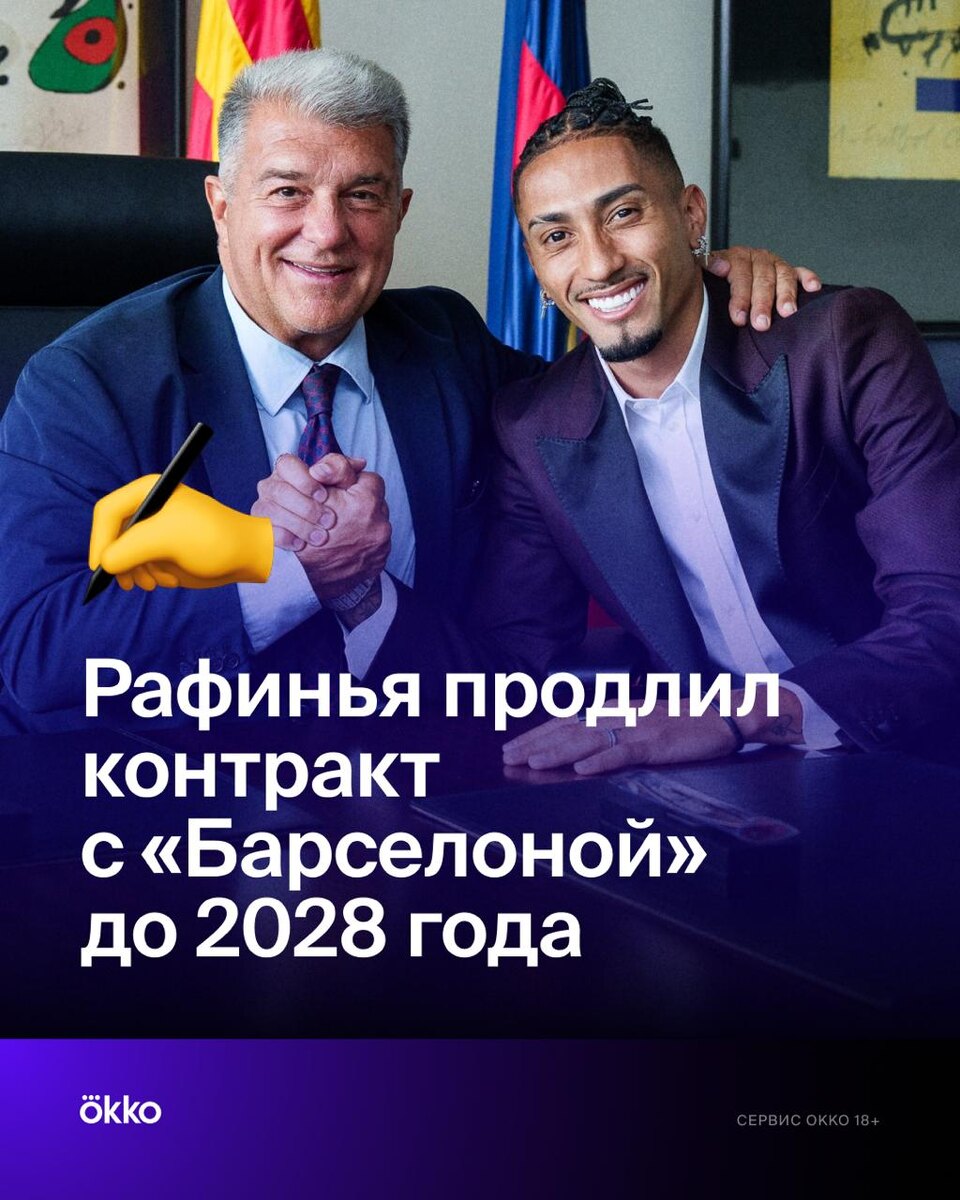 Рафинья остается в «Барсе» до 2028 года. Потрясающие новости для каталонцев ❤️ И Флик тоже продлил контракт, но до 2027-го. Последим еще за атакующим футболом Ханси. 👏 — правильное решение от руководства клуба!