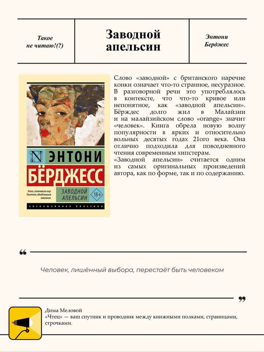 Рассказывал про «Заводной апельсин» Бёрджесса.