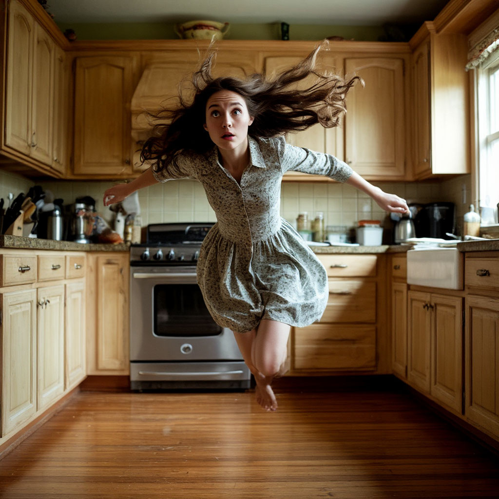 Лера, его милая жена, была в легком платье до колен, но стояла она не на полу. Она зависла в воздухе, вытянув руку к верхней полке шкафа. Пальцы сомкнулись на кастрюле, и в следующую секунду она плавно опустилась вниз.