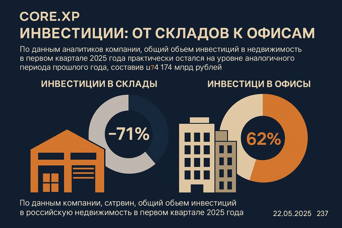 π #Π°Π½Π°Π»ΠΈΡΠΈΠΊΠ° π ΠΠ½Π²Π΅ΡΡΠΈΡΠΈΠΈ ΡΠΌΠ΅ΡΡΠΈΠ»ΠΈΡΡ: ΠΎΡ ΡΠΊΠ»Π°Π΄ΠΎΠ² β ΠΊ ΠΎΡΠΈΡΠ°ΠΌ ΠΠ½Π°Π»ΠΈΡΠΈΠΊΠΈ CORE.XP ΠΏΠΎΠ΄Π²Π΅Π»ΠΈ ΠΈΡΠΎΠ³ΠΈ I ΠΊΠ²Π°ΡΡΠ°Π»Π° 2025 Π³ΠΎΠ΄Π° Π½Π° ΡΡΠ½ΠΊΠ΅ Π½Π΅Π΄Π²ΠΈΠΆΠΈΠΌΠΎΡΡΠΈ. ΠΠ½Π²Π΅ΡΡΠΎΡΡ Π΄Π΅Π»Π°ΡΡ ΡΡΠ°Π²ΠΊΡ Π½Π° ΠΎΡΠΈΡΡ β ΠΈ ΡΡΠΎ ΠΊΠ»ΡΡΠ΅Π²Π°Ρ ΡΠ΅Π½Π΄Π΅Π½ΡΠΈΡ Π½Π°ΡΠ°Π»Π° Π³ΠΎΠ΄Π°. πΌ ΠΠ±ΡΠΈΠΉ ΠΎΠ±ΡΠ΅ΠΌ ΠΈΠ½Π²Π΅ΡΡΠΈΡΠΈΠΉ Π² ΡΠΎΡΡΠΈΠΉΡΠΊΡΡ Π½Π΅Π΄Π²ΠΈΠΆΠΈΠΌΠΎΡΡΡ ΡΠΎΡΡΠ°Π²ΠΈΠ» 174 ΠΌΠ»ΡΠ΄ β½, ΠΏΠΎΡΡΠΈ Π½Π° ΡΡΠΎΠ²Π½Π΅ 2024 Π³ΠΎΠ΄Π° (β6%). ΠΠΎ Π³Π»Π°Π²Π½ΠΎΠ΅ β ΡΡΡΡΠΊΡΡΡΠ° Π²Π»ΠΎΠΆΠ΅Π½ΠΈΠΉ ΡΠ΅Π·ΠΊΠΎ ΠΈΠ·ΠΌΠ΅Π½ΠΈΠ»Π°ΡΡ. πΉ 62% Π²ΡΠ΅Ρ