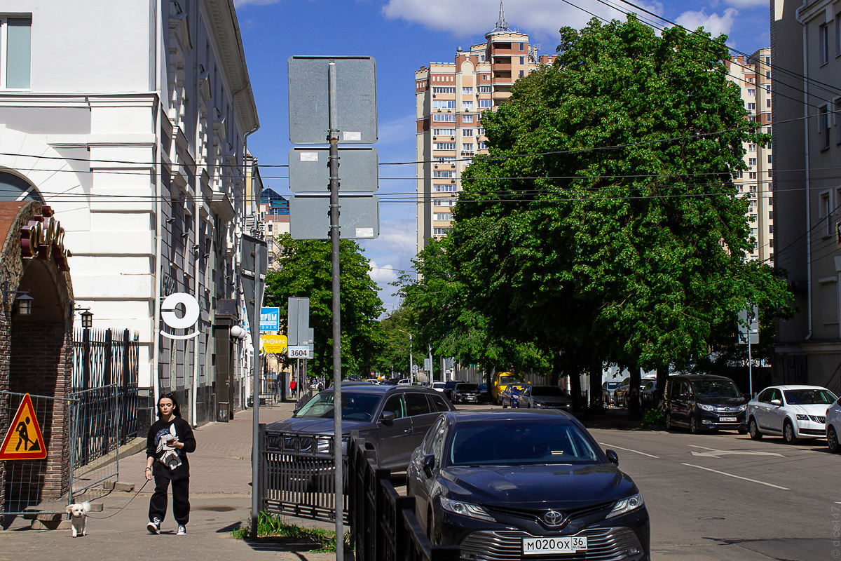 Перекресток с улицей Средне-Московской. Угловой дом — Воронежский музыкальный колледж. Здание построено в 1913-1914 годах табачным фабрикантом Сычевым.