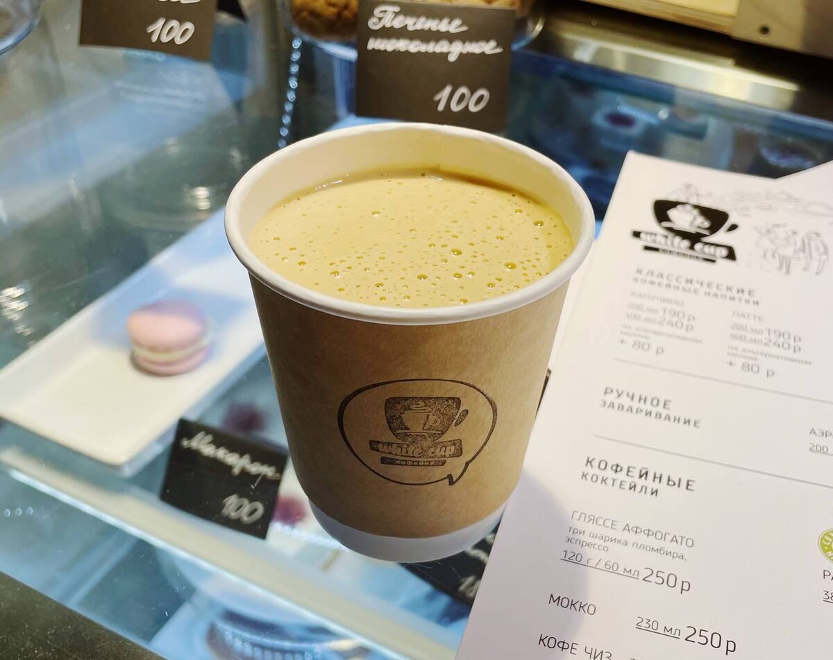 Занятный самарский специалитет – сырный кофе. Взбивают сливочный сыр, типа хохланда, сахарку там понятно добавляют, и потом смешивают с кофе. По текстуре – как молочный коктейль из фастфуда, по вкусу – как жидкий кофейный баскский чизкейк. Подают, например, в кофейне White Cup во дворе Музея Модерна.