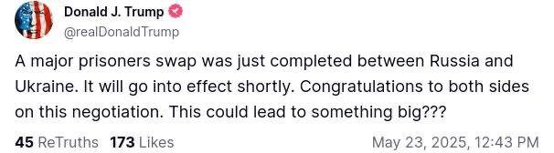 ❗️❗️ ОБМЕН ПЛЕННЫМИ «1000 НА 1000» ПРОИЗОШЕЛ СЕЙЧАС Об этом сообщил Трамп. Президент также поздравил страны и добавил, «что это могло бы привести к чему-то большему». #лайфстайл@kazan_smi 🙏 — спасибо! 💔 — с возвращением, герои! 👍 Подписаться на канал БЕСПЛАТНЫЙ РОЗЫГРЫШ