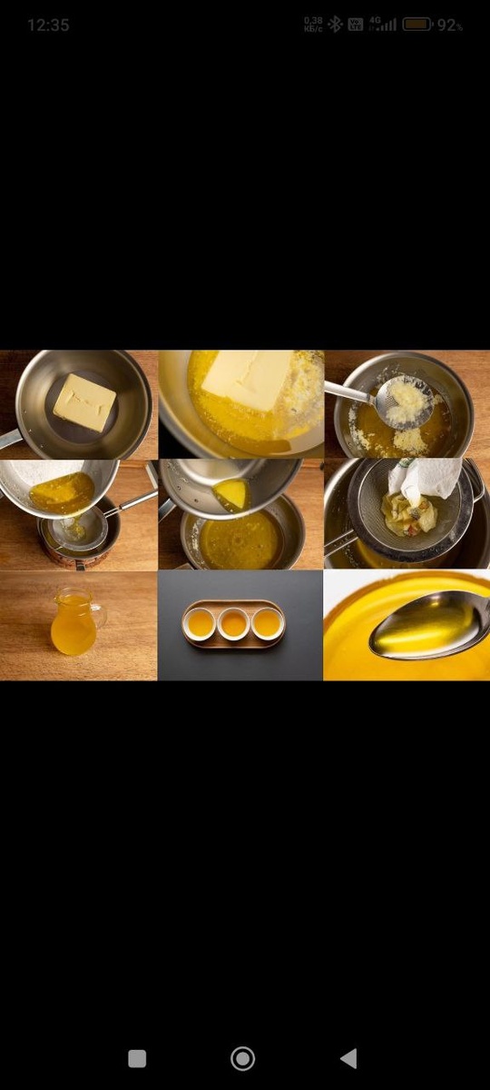 Когда масло расплавится, станет заметна белая жидкость и маленькие комочки или сгустки на дне кастрюли. Необходимо отделить масло от этих элементов, аккуратно процедив в емкость.