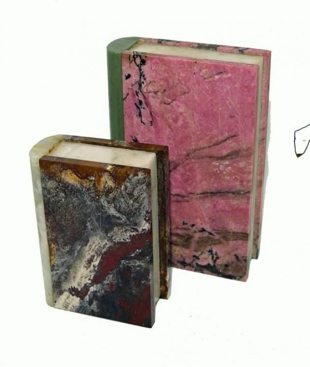 Муж вернулся домой и увидел, что на полочке красуется книжка из родонита. Та самая.