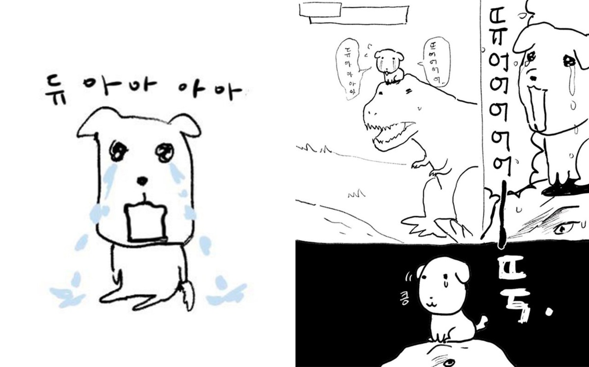 듀아아아 [дюааа] Слово, которое сейчас можно встретить очень много в интернете и среди молодежи. Это скорее даже не слово, а звуковое выражение, имитирующее крик или возглас для усиления эмоциональной окраски. Так как это не стандартное слово, а просто междометие или звукоподражание, его использование зависит только от контекста и настроения говорящего, может означать радость, решимость, удивление, расстройство или даже испуг. Гиперболизированные эмоции. Откуда же появилось это слово? Благодаря 가나디(канади) — милый персонаж в виде щенка, который издает звук «ду» всякий раз, когда выражает эмоции. Плюс благодаря огромной популярности мема «듀아아아아», который означает обливаться слезами, прям через край, как на картинке к посту. Когда же использовать? Когда вы хотите выразить свои эмоции преувеличенно, так, будто ваше сердце вот-вот разорвется, нет ничего лучше этого. Примеры: Когда друг сообщил отличную новость, можно ответить: 와! 정말 대단하다! 듀아아아! – Вау! Это действительно здорово! Дуааа! К