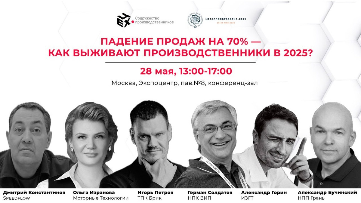 ❗️Открытая сессия на выставке «Металлообработка-2025» Приглашаем Вас 28 мая на Открытую сессию Содружества производственников «ЦЕХ»: «Выжить и вырасти: откровенный разговор производственников о 2025-м» ✅ Продажи падают на 30–70% ✅ Дебиторская задолженность растет ✅ Кассовые разрывы — у всех ✅ Кредиты стали неподъемными ✅ Системные неплатежи от клиентов ✅ Нехватка кадров — особенно в производстве Все в этом живут, но почти никто не говорит вслух. Мы — будем. Честно. По делу. На сессии выступят владельцы производственных компаний, которые проходят через эти вызовы прямо сейчас. Обсудим: 🔹 Управленческие подходы в условиях кассовых разрывов и нестабильности 🔹 Цифровые инструменты и решения, которые помогли сохранить эффективность 🔹 Возможности господдержки и межпредпринимательского сотрудничества 🔹 Новые форматы получения заказов и удержания рынка 📆 Когда: 28 мая 2025 🕐 Время: 12:45–17:00 📍 Где: Москва, Экспоцентр, Павильон № 8, конференц-зал 🎟 Регистрация Участие бесплат