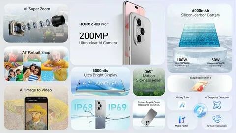 Honor выкатил новые смартфоны — 400 и 400 Pro, и сразу с амбициями на будущее Обновления им обещают аж до 2031 года. Работали над ними в связке с Google, так что тут всё по-взрослому: видео можно генерировать прямо на телефоне с помощью модели Veo 2, куча ИИ-фишек для фото, и даже если кто-то моргнул — ИИ «откроет глаза» на кадре. 400 Pro получил OLED-дисплей на 6,7 дюйма, Snapdragon 8 Gen 3, батарейку на 6000 мАч и суперкрутую камеру на 200 Мп. Есть и зум, и макро, и селфи на 50 Мп — фотолюбителям понравится. Заряжается быстро: 100 Вт по проводу, 50 — по воздуху.Базовый Honor 400 — попроще: экран поменьше, чип слабее, зум-камеры нет, но батарейка такая же. Отличие в защите — у Pro она IP69, у младшей модели — IP66 (то есть ливень ок, но в джакузи не выдержит). В общем, умные, красивые и на годы вперёд.