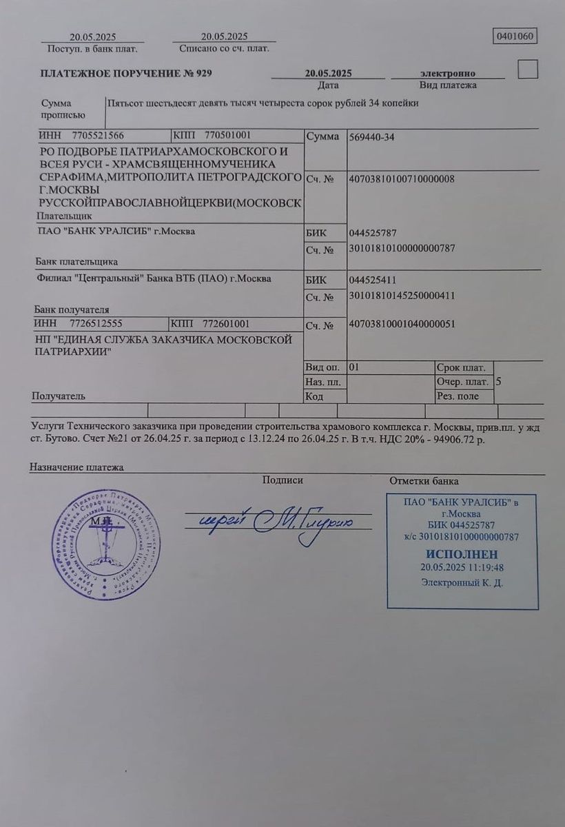 Дорогие друзья, благодарю всех кто принял участие в помощи храму по оплате работы технического заказчика строительства храма сщмч