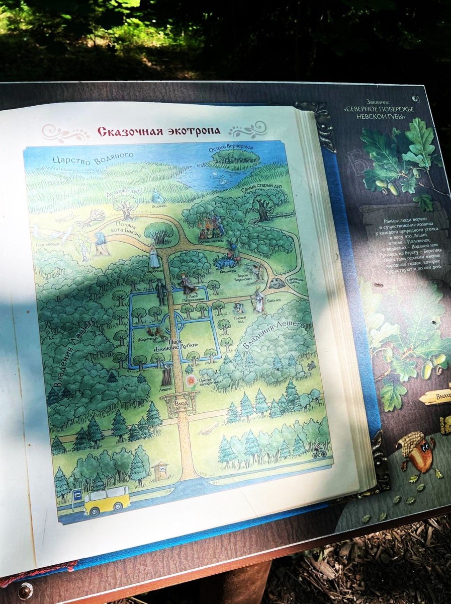 Эта тропа проложена через старинный парк, созданный по приказу Петра I. Здесь даже информационные стенды сделаны в виде раскрытых книг сказок. Все они связаны одним общим заданием ― найдя все спрятанные на них буквы, можно сложить целую фразу. Это зашифрованное послание одного из волшебных обитателей леса.