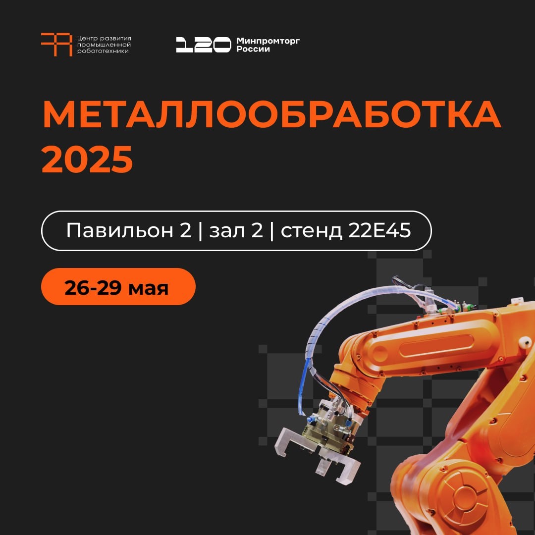 ⚡️Центр развития промышленной робототехники на Металлообработке 2025 С 26 по 29 мая в Москве пройдет 25-я юбилейная выставка «Металлообработка-2025» — ключевое событие для отрасли. ЦРР представит современные роботизированные решения, которые повышают эффективность и точность металлообрабатывающих процессов: 🔡Роботизированный комплекс для наплавки Универсальный промышленный робот для дуговой сварки и наплавки, способный работать с крупногабаритными деталями. Его компактная конструкция позволяет устанавливать его даже в ограниченном пространстве — под углом или в перевернутом положении. 🔡Система неразрушающего контроля Роботизированный комплекс для ультразвуковой томографии, предназначенный для выявления дефектов в конструкционных материалах и изделиях сложной формы. Обнаруживает трещины, расслоения и другие дефекты с высокой точностью. 🔡Обучающая робототехническая ячейка Комплексное решение для подготовки специалистов в области Индустрии 4.0. Позволяет отрабатывать ключевые прои