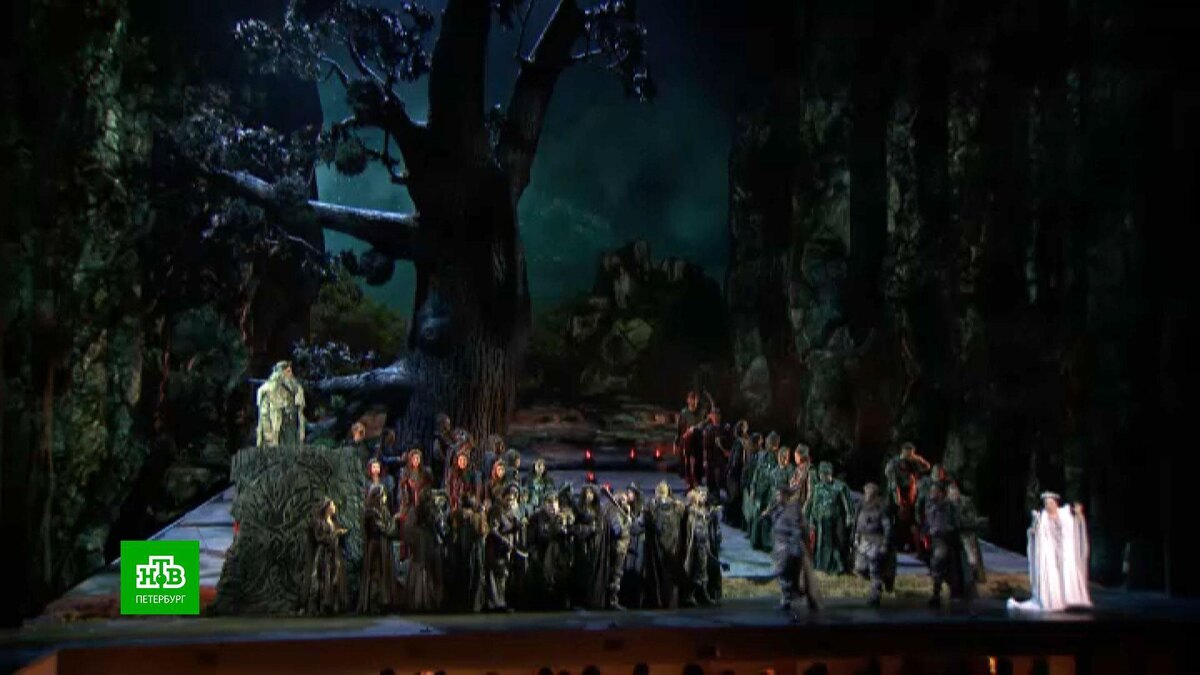 [ Смотреть видео на сайте НТВ ] XXXIII Музыкальный фестиваль «Звезды белых ночей» открылся лирической трагедией. На сцене Мариинского театра первые за 164 года поставили оперу Винченцо Беллини «Норма». В театр, который славится большими стилями, крупными голосами и партитурами, шедевров бельканто не так уж много. Декорации к опере выглядят, как скалы, но по структуре словно окаменевшая кора дуба. Таким Сергей Новиков придумал мир галлов-друидов, которые обитали на юге Франции в I веке нашей эры. В символике культа художник создал и огромный дубовый венец из ствола. В театре 15-метровую кольцевую конструкцию уже прозвали деревянным коллайдером. Сергей Новиков, художник-постановщик: «Сейчас сложно даже представить, но когда эта конструкция будет висеть и парить в воздухе, будет ощущение легкого венка, а иногда и тяжелого над героиней». Партия Нормы, жрицы храма друидов, для Альбины Шагимуратовой особенная. Музыка Винченцо Беллини — это прежде всего великолепие бельканто. Но для обладател