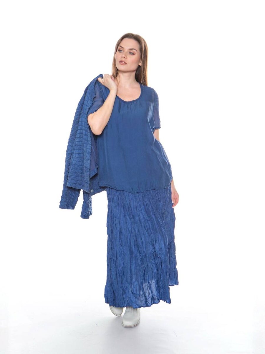 Цвет сезона — королевский синий в коллекции от PRAECHTIG BERLIN. Элегантный комплект из 100% премиального шелка: стеганый шелковый жакет с лёгким блеском, свободная блуза с короткими рукавами и воздушная юбка-макси из жатого шелка. Идеальный выбор для изысканных летних образов — сочетание роскоши, комфорта и немецкой элегантности. Все модели выполнены с вниманием к деталям и превосходным качеством пошива. Подходит для создания как монохромного total look, так и в сочетании с базовыми элементами гардероба. Для оптового сотрудничества пишите нам: 📲-в директ 📲-по номеру 8 800 511 51 95 📲- +7 495 146-92-72 📲Наш сайт — https://sollery.pro ✉️-на почту info@sollery.fashion