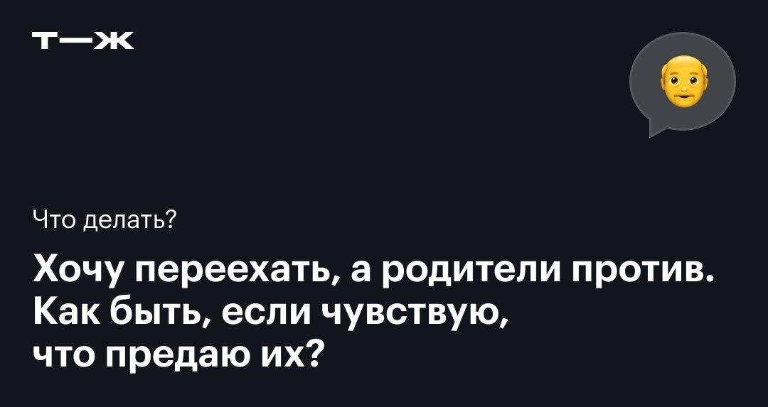 Нормально ли чувствовать вину перед родителями и что с этим делать? Наш читатель Павел находится перед непростой дилеммой: Хочу переехать в другую страну, но родители отказываются наотрез. В идеале, конечно, хотелось бы их перевезти тоже, постараться устроить на новом месте, чтобы быть всем рядом. Они люди взрослые, здоровые, тьфу-тьфу-тьфу, сами могут себя обеспечить, но так ведь будет не всегда. Павел винит себя за то, что он «бросает родителей на произвол судьбы». Вместе с психологом рассказываем, как разобраться в этом сложном чувстве: https://t-j.ru/m-tg/feeling-guilt-parents/