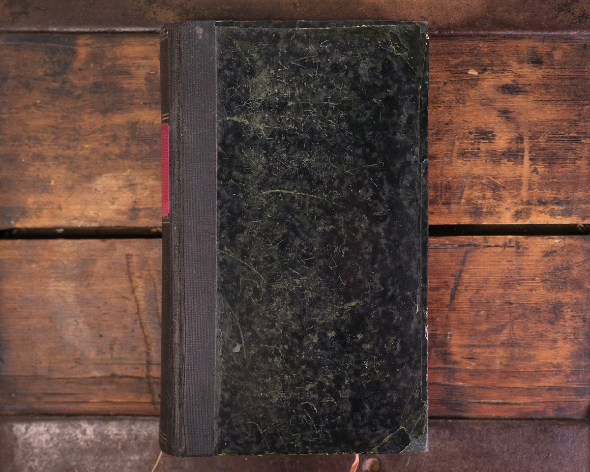 Невнятный тёмный цвет оригинального переплёта выглядел крайне тоскливо, поэтому владелец попросил сделать новый, в более тёплых тонах. Мраморная бумага, изготовленная специально для издания, значительно оживила оформление сторонок. Корешок выполнили из плотной кожи, которая надёжно сохранит целостность переплёта и блока. Уголки сторонок также укрепили кожей, чтобы они поменьше отбивались об книжные полки.