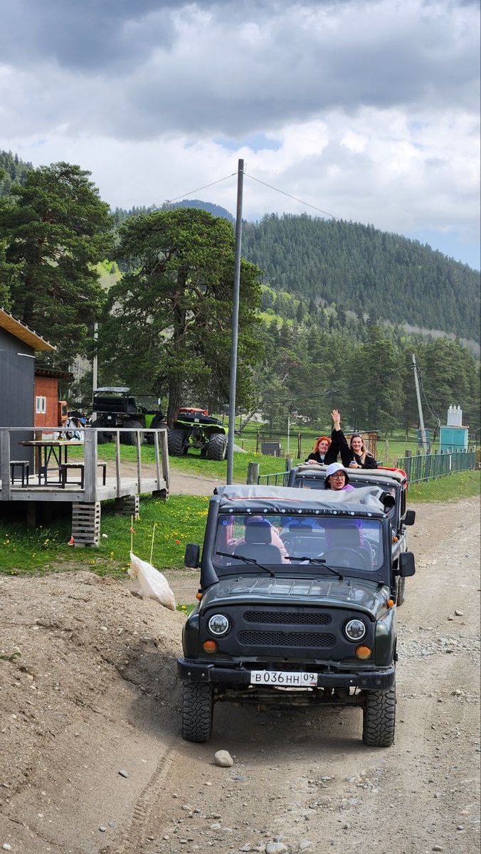 И ещё одна история о джипах. Едем мы уже обратно, ну вроде наорались так, что сил нет, хрипим уже . Самая храбрая и стойкая из нас уверенно так говорит: "Да все уже орать негде, закончилось уже". И в ту же секунду наш водитель резко уходит с дороги на камни, газует и летит в гору. Как мы орали... Даже та из нас, которая самая храбрая. 🤣 Наверное водитель ее услышал и не смирился. А потом навстречу нам ехали туристы на лошадках. Джипы остановились, пропуская. Как объяснил Расул, это чтобы не напугать животных. А лошади идут и видно нервничают на тарахтящие двигатели. Прошли две лошадки, на отдалении от них с явным отставанием от группы едет девушка на лошади, которая вероятно не сильно слушается свою всадницу. Проезжая мимо нас, девушка с отчаянием и раздражением бубнит себе под нос: - И чё я бл... тоже на машине не поехала 😏