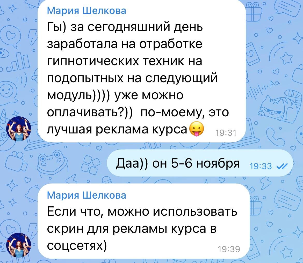 Чтобы не было как в прошлый раз - напоминаю: Завтра стартует первый модуль курса. На нём вы и реально помогать людям научитесь, и новую специальность освоите - чтобы деньги зарабатывать и диплом для ведения деятельности сможете получить. Для записи - пишите админу #психосоматика
