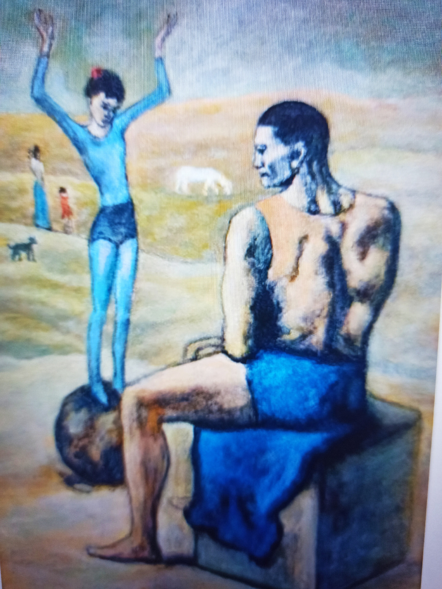 Как я уже писала в предыдущей статье, одним из героев выставки «Арт Ростов» стал Пабло Пикассо. Интересно, что в день посещения выставки я случайно на канале Культура увидела передачу, посвященную Пабло Пикассо и его работе «Девочка на шаре», которая знаменует окончание «голубого» периода в творчестве художника и переход к «розовому» в котором полотна становятся оптимистичнее и светлее. Картина «Девочка на шаре» находиться в Государственном музее изобразительных искусств имени А. С. Пушкина в Москве. Творения Пикассо очень разноплановые, выполнены в разных техниках и его творческая биография и личная жизнь интересны и насыщены событиями. Я внимательно прочитала и посмотрела материалы, представленные в экспозиции, обо всем рассказать не возможно и в год 80-я Победы я хочу заострить внимание на его работах посвященных войне и миру, смерти и жизни. Трагедия Герники «Герника» - огромный холст размером 3,5 на 7,8 метра, написана маслом в 1937 году за 33 дня. Такое огромное впечатление прои