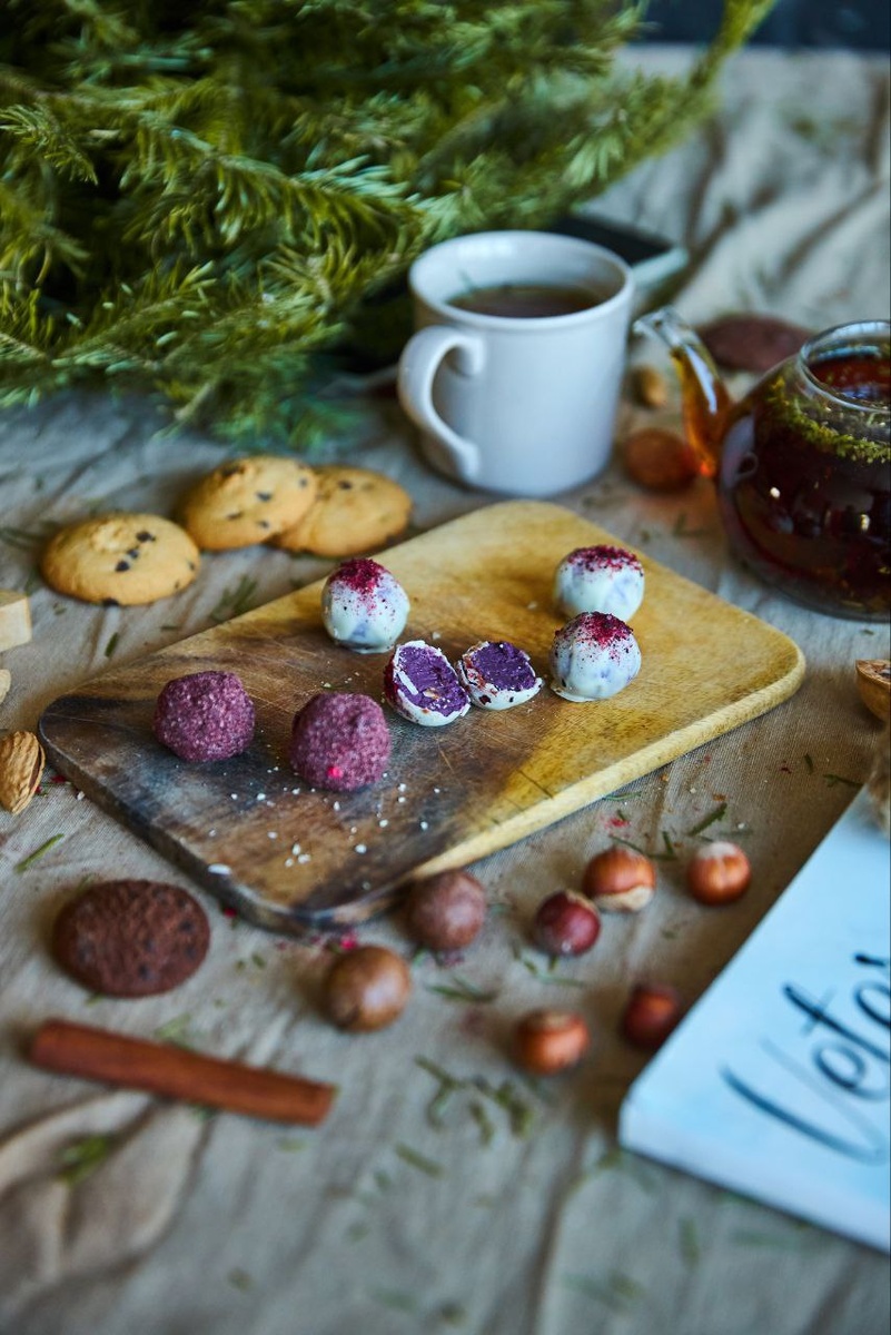ГЕНЕРАЦИЯ ИДЕЙ Разработка каждого нового вкуса трюфеля в "Шокодива" начинается с фундаментального этапа – генерации идей. Это не спонтанный процесс, а осмысленный поиск, который опирается на несколько ключевых направлений: 1. Сезонность ингредиентов. Мы внимательно относимся к тому, что предлагает природа в каждый конкретный период. Актуальные фрукты, ягоды, орехи, травы – их характерные ноты и текстуры часто подсказывают направления для новых вкусовых композиций. Это позволяет создавать вкусы, резонирующие с текущим временем года. 2. Переосмысление классики. Мир кондитерского искусства богат проверенными временем сочетаниями. Мы анализируем классические вкусовые пары, но не с целью простого копирования. Наша задача – найти возможности для их современного прочтения, добавления неожиданных нюансов или изменения акцентов, чтобы придать знакомому вкусу новую глубину. 3. Гастрономические тенденции. Кулинарный мир постоянно развивается. Мы изучаем актуальные международные тренды, сле