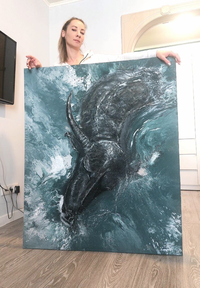 Для того, чтобы Вы оценили масштаб, сделала фото с новой картиной . Буйвол - символ силы, терпения и упорства. Картина "Бурные воды" 120×80, смешанная техника (текстура/акрил) Доступна к бронированию #интерьерная_картина #арт #художник #искусство #текстура #буйвол #art #саратов