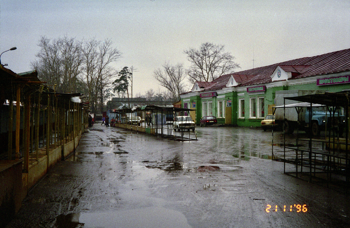 Я уже выкладывал фотографии окрестностей железнодорожного остановочного пункта «Салтыковская» в девяностых годах. Все эти фотографии были оцифрованы с плёнок из моего домашнего архива. В этой публикации я сравню фотографии девяностых годов с фотографиями нынешнего положения дел в тех же местах. Фотографии из девяностых пропитаны безысходностью. Сейчас подобной безнадёги нет, но эта территория и поныне наделена специфической аурой. Окрестные заборы оклеены объявлениями работных домов, а в иные тёплые вечера в больших количествах появляются алкоголики различной степени потерянности. На лицо они ужасны, но внутри как правило безобидны. Разве что иногда засыпают на ступеньках магазинов и продавщицам приходится прикладывать усилия, чтобы побудить их переместиться в другое место.