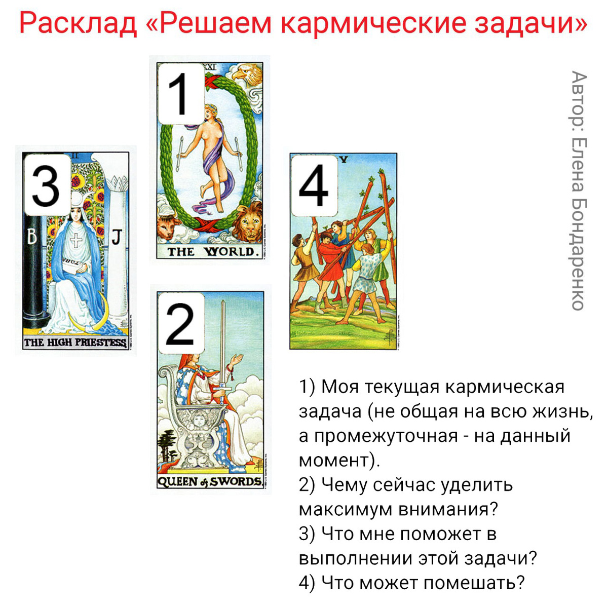 Начинающие тарологи часто пускают очень важный момент в прогнозировании будущего - кармическую составляющую. ❗️ А получается, что полноценно предсказать будущее и главное - подстелить соломки на сложных виражах мы можем только когда четко понимаем кармические ПРИЧИНЫ происходящего. А если не понимаем, то будем тыкаться, как слепые котята и попадать во все неприятности, которые возможно. Все грабли будут наши! 📝 Давайте возьмем для примера наш расклад "Решаем кармические задачи". Его можно делать на конкретный промежуток времени. 🕔Рассмотрим пример на ближайшие пол года: 1️⃣ Моя кармическая задача - Мир - Мир говорит о гармонии и балансе, когда все составляющие собираются в единый целый пазлик. То есть необходимо привести в гармонию, баланс и равновесие свою жизнь и все ее составляющие. Помните "Колесо баланса"? Начать, конечно, необходимо со своего психоэмоционального состояния - выйти в покой и умиротворение. 2️⃣ Чему сейчас уделить максимум внимания - Дама мечей - Правильному