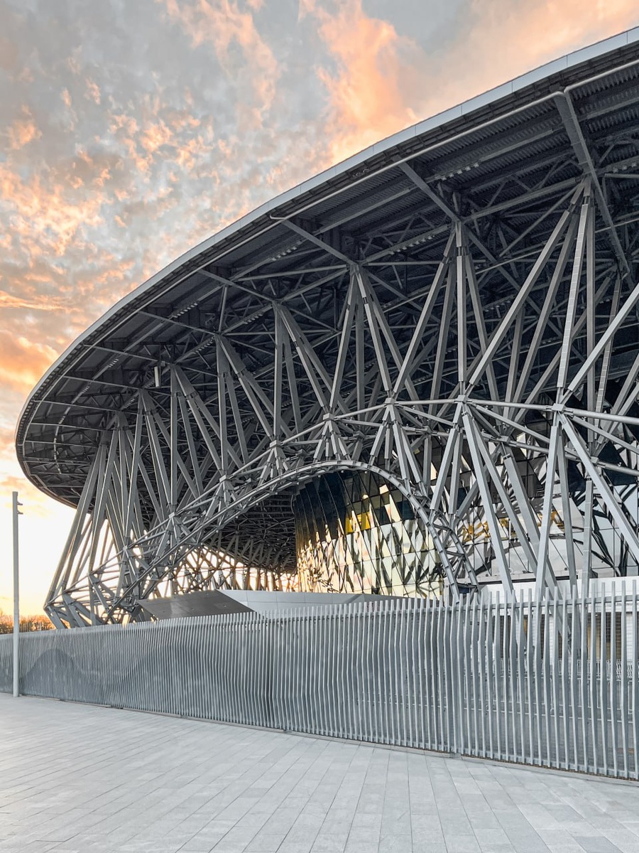 Разбавим высотную повестку наших публикаций кадрами с участием малоэтажного проекта, недавно реализованного в городе Санкт-Петербург. Здание имеет функционал ледовой арены (кстати, крупнейшей в мире) и является штаб-квартирой для хоккейного клуба «СКА». Фасад во многом состоит из металлических балок, вместе образующих массивный каркас, поддерживающий широкие поля кровли. Как считаете, с точки зрения своего облика, удался ли проект? #архитектура 😊 Небоскрёбы России