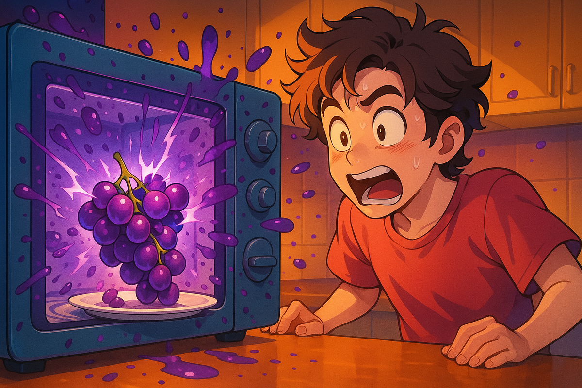 Ты знал, что виноград в микроволновке... взрывается? Нет, не просто нагревается. ВЗРЫВАЕТСЯ. С плазмой, искрами, дымом — как будто ты вызвал Люка Скайуокера, но из фруктов. Если вдруг решишь проверить — стоп. Сразу скажу: лучше не надо. И сейчас объясню, почему. Микроволновка — штука умная. Она не просто греет, она заставляет молекулы воды вибрировать. И если ты кладёшь внутрь, скажем, тарелку супа — всё греется нормально. А теперь берём виноград. Маленький, сочный, с кучей воды внутри. А ещё с очень тонкой кожурой и почти идеальной формой для фокусов физики. Вот где начинается безумие. Особенно, если взять две половинки виноградины и положить рядом, почти соприкасаясь. В этом месте образуется мостик из ионизированного сока. А микроволны такие: «О, резонанс!» — и создают мощный скачок энергии. Результат — разряд, искра, ионизация воздуха. То есть мини-вспышка плазмы. И всё это — из-за фрукта. Учёные реально снимали это на высокоскоростные камеры. Плазма, Карл! Во-первых, это красиво.