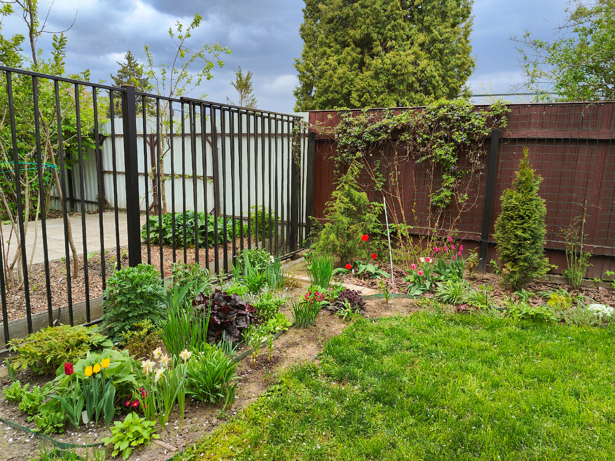 Недавно я рассказывала про ужасную болезнь тюльпанов - вирус пестролепестности. Мои тюльпаны ожидаемо заболели. Было бы странно, если они остались здоровыми после трехлетнего соседства с зараженными. Теперь показываю, как выглядит вирус пестролепестности на них. Все они растут в цветнике, который расположен прямо по границе наших участков, поэтому они первые попали под удар. Самый наглядный пример - розовый бахромчатый Фэнси Фриллз. Этот сорт растёт у меня давно, цветёт хорошо, каждый год даёт полноценную луковицу на замену. Вирус проявился на нём сразу очень заметно: некоторые цветки стали белыми, от розового цвета сохранились только небольшие полоски. Как ни жаль, но этот сорт придется выкинуть. Рядом посажен тоже очень надёжный сорт с потерявшимся названием. Тоже никогда не подводит, всегда ровное, хорошее цветение. В этом году он ещё выглядит привычно, но, я думаю, он уже тоже заражён. В нескольких метрах от них растут жёлтые тюльпаны с затесавшимся к ним в компанию одним крас